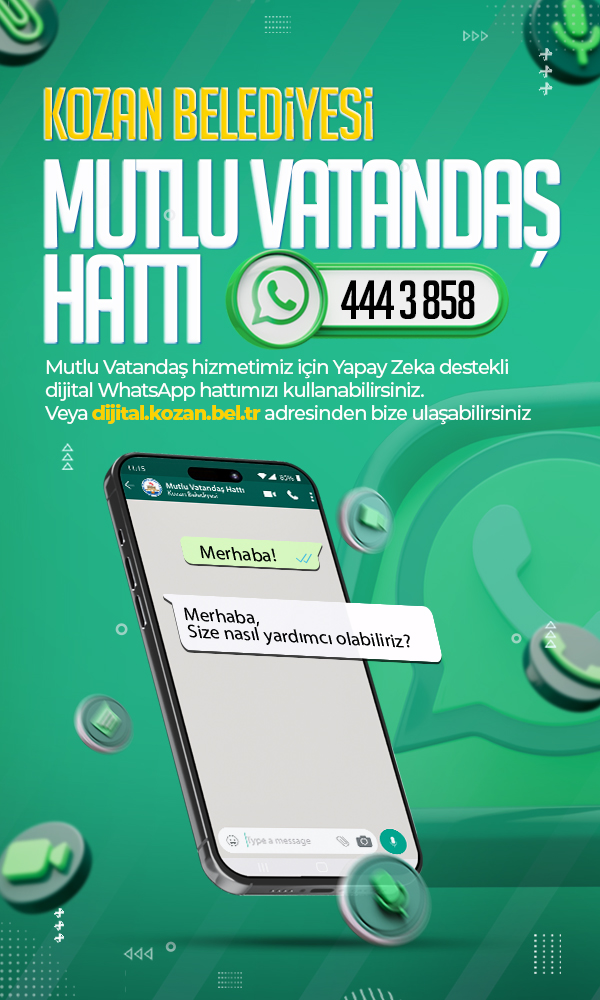 Amacımız; Kozan’ı sadece bugünün değil, yarının da yaşanabilir, üretken, çevreci ve çağdaş bir şehir haline getirmek… Bu doğrultuda her adımımızda şeffaflık, katılımcılık ve ortak akıl ilkeleriyle hareket ediyor, siz değerli hemşehrilerimizle el ele vererek ilçemizin kalkınmasını hedefliyoruz.